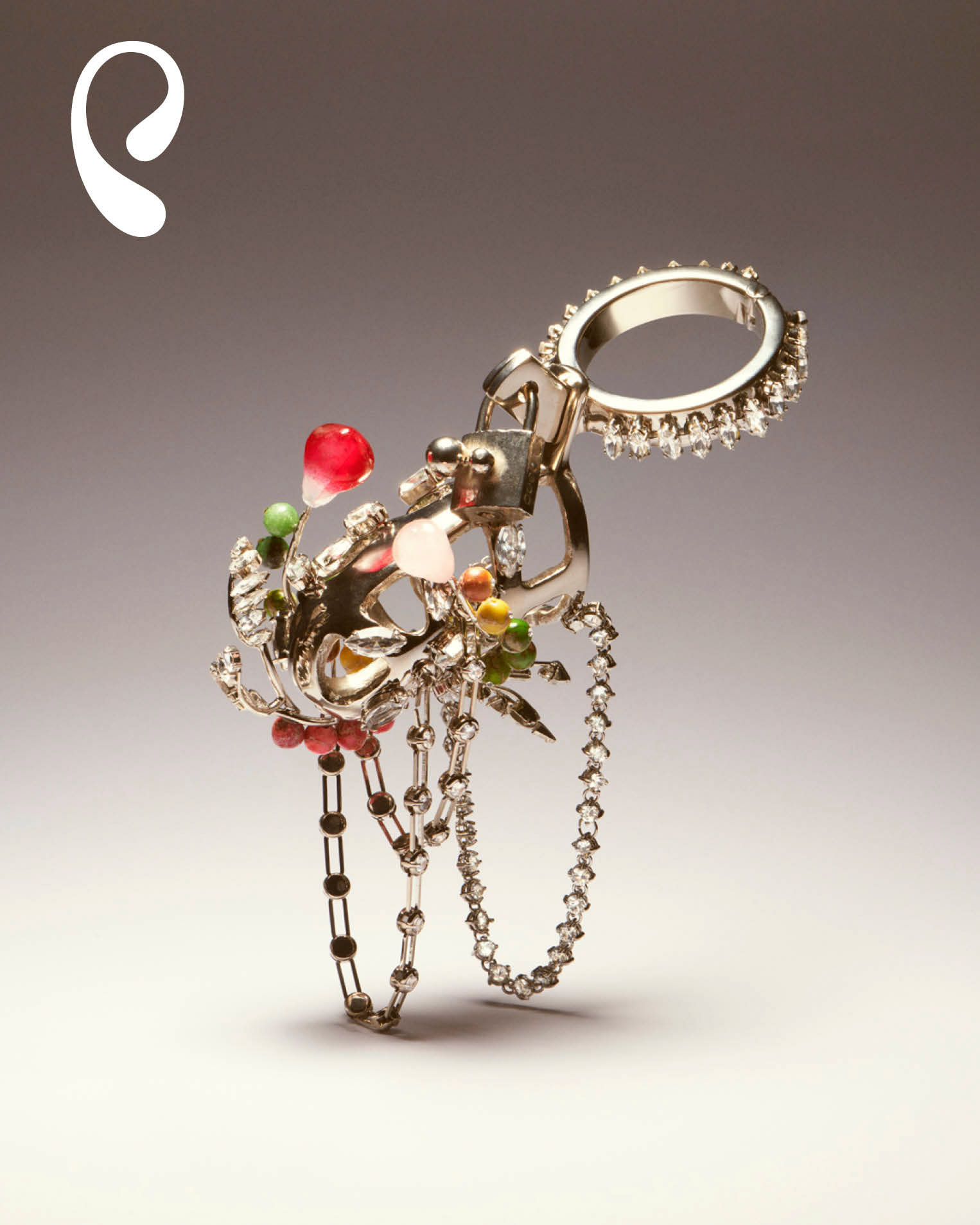 Logomark design for Marco Panconesi’s jewelry brand, inspired by the shape of an ear. The mark is brought to life by creative agency Golgotha through a series of three-dimensional renderings that showcase the brand’s distinct spirits and moods. Creative direction by Office Ben Ganz. Three-dimensional renderings by agency Gogoltha.